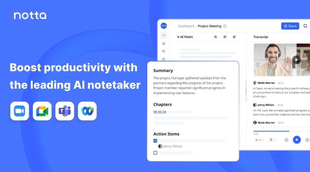 Notta.ai combats the prospective stagnancy spurred by remote collaboration and digital content creation. Leveraging powerful AI-backed transcription and note-taking tool, Notta.ai has 10+ million users, transcribe in 58 languages and a whopping 98.9% transcription accuracy, Notta brings speed, clarity and clarity in multiple languages to every meeting, lecture or podcast .