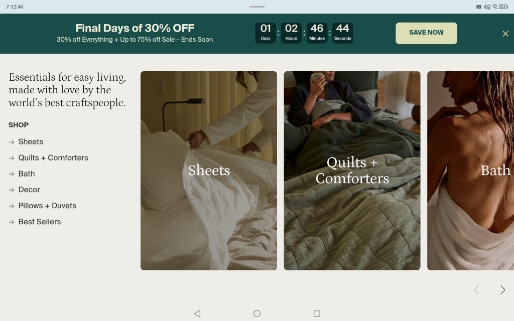 For people prioritizing aesthetic appeal and materials made in an environmentally friendly way, Parachute Home could be a great option. Just be sure to check out specific product reviews and weigh their own preferences/perceptions prior to buying.