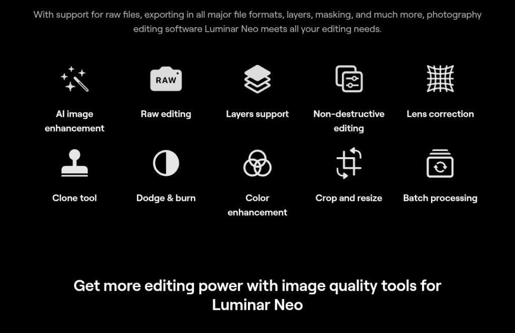 Luminar Neo comes with 30+ AI tools, which fall under several categories: